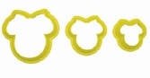 Cortador Ratinha Grande Três peças de tamanhos diferentes com o formato da cabeça da Minnie 8.5x9cm; 7x7.5cm e 5.5x6cm