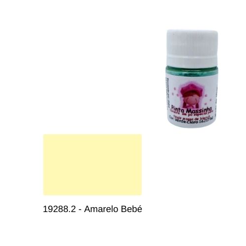 Pinta Massinha - Amarelo bebé 20g Coloque na massa já amassada com a cor branca uma pequena quantidade de pinta-massinha e vá amassando até atingir a tonalidade desejada. A massa vai escurecer três tons a mais do que o tom do pinta-massinha.