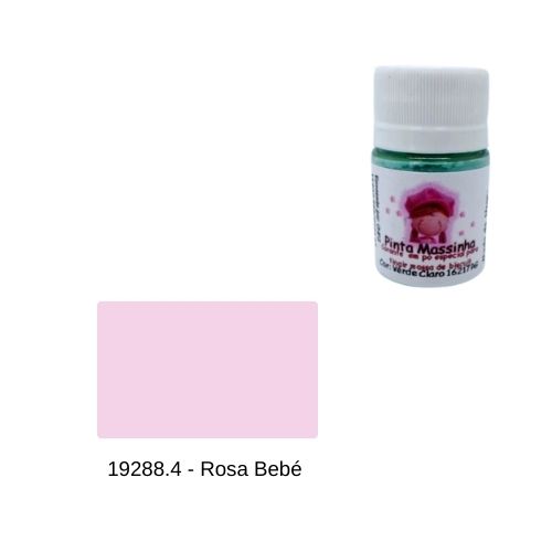 Pinta Massinha - Rosa bebé 20g Coloque na massa já amassada com a cor branca uma pequena quantidade de pinta-massinha e vá amassando até atingir a tonalidade desejada. A massa vai escurecer três tons a mais do que o tom do pinta-massinha.
