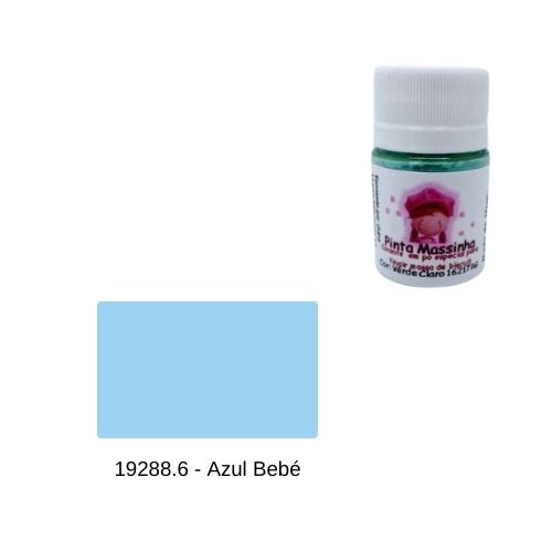 Pinta Massinha - Azul bebé 20g Coloque na massa já amassada com a cor branca uma pequena quantidade de pinta-massinha e vá amassando até atingir a tonalidade desejada. A massa vai escurecer três tons a mais do que o tom do pinta-massinha.