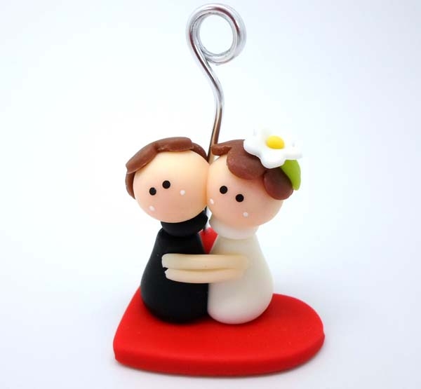 Suporte para foto com Noivos Abraçados em cima de coração 5x6cm