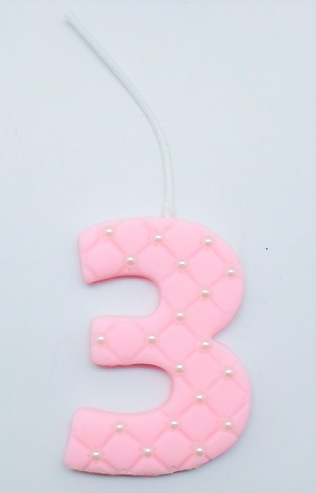 Topo de bolo em forma Número 3 com pavio - Azul 8cm