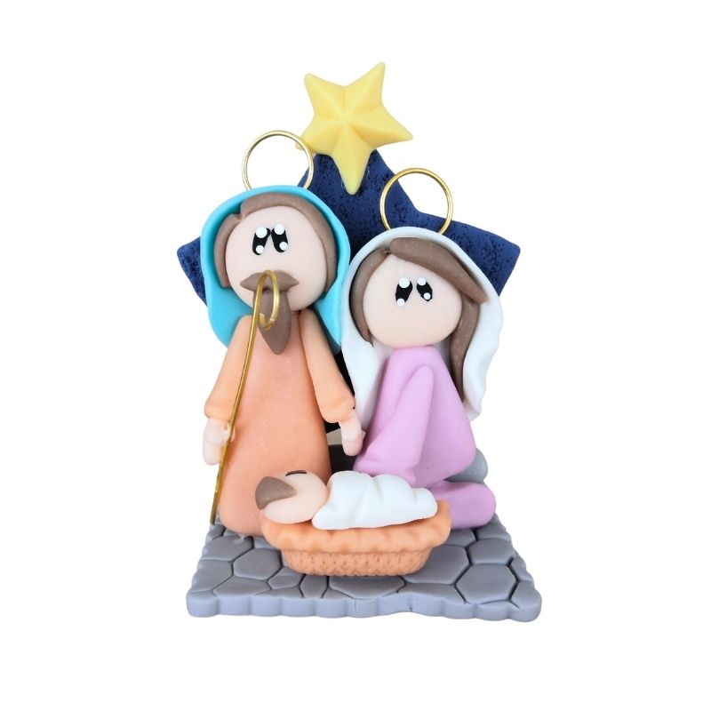 Sagrada familia de biscuit com arame Tamanho: 9cmx13cm U.V:1 Mais Informações: Peças artesanais feitas em biscuit adicione uma base decore com musgo, neve, glitter…. e crie um presépio só seu