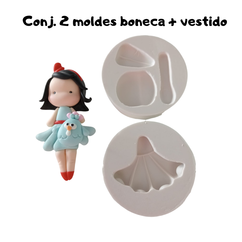 Conjunto 2 moldes Bonequinha Tamanho: 8,5cm U.V:1 Mais Informações: Molde de qualidade superior, produzido em Portugal